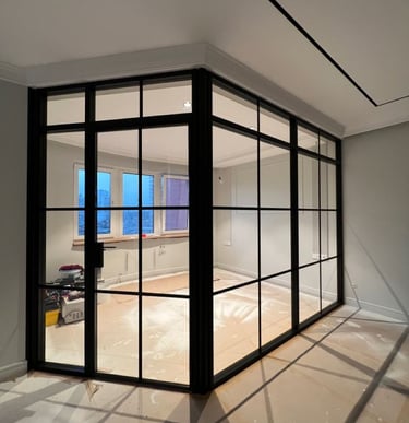 Berbagai layanan termasuk pemasangan partisi kaca, kusen aluminium, pintu dan rolling door aluminium, dan shower box kaca tempered.